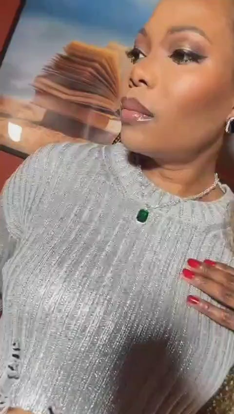COLLIER ESMERALDA AVEC PENDENTIF & BOUCLES D'OREILLES ARGENT RHODIE